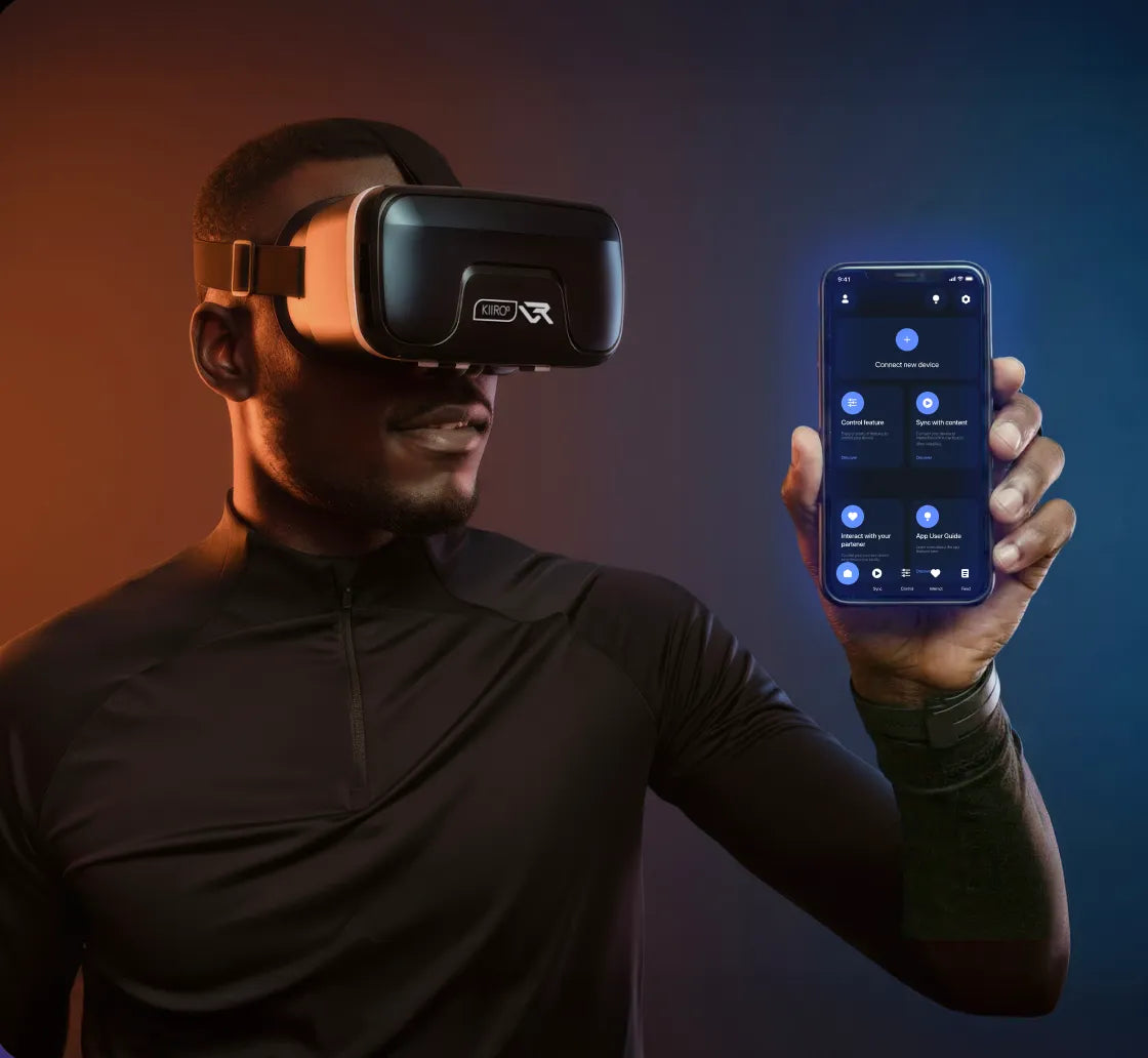 Use your own VR headset and connect your Kiiroo toy through the FeelConnect App, or start with a Kiiroo VR starter kit that includes everything you need to get set up right away.